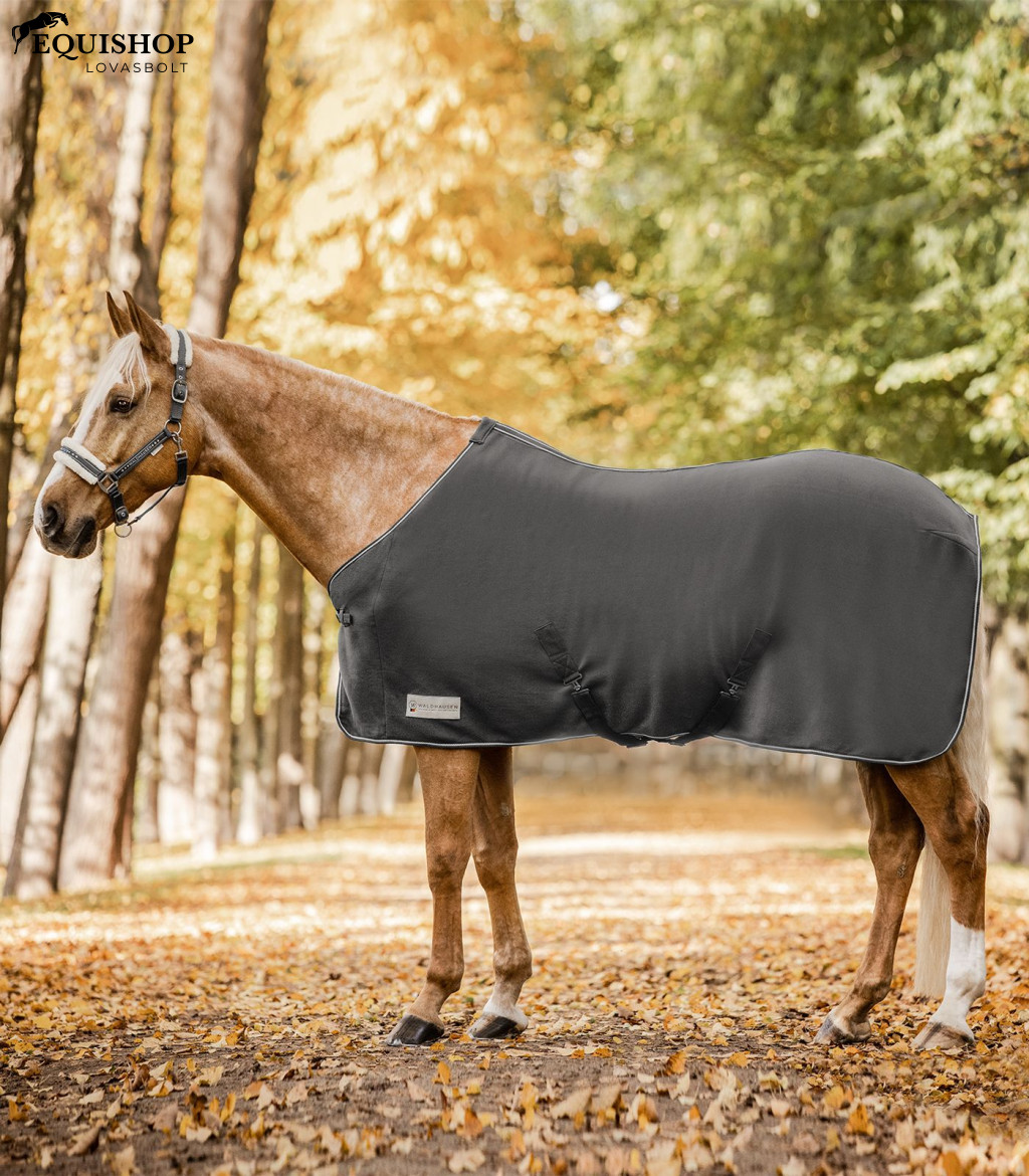 Polár takaró keresztpántokkal, egyetlen elülső csattal és farokzsinórral.