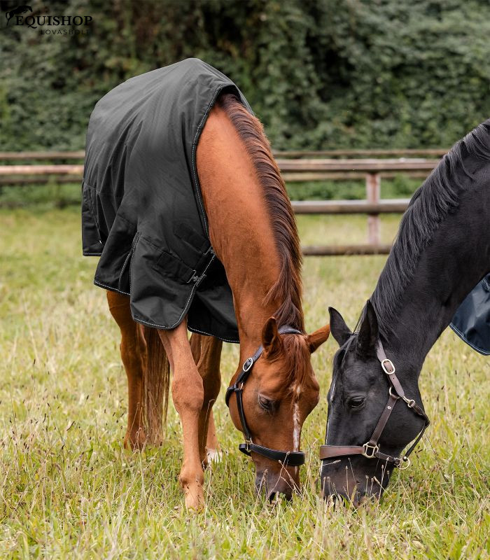A Waldhausen Nordic kültéri takarójával optimális kültéri kényelmet biztosít lovának a hűvös napokon. A dupla T-alakú elülső záródás jó illeszkedést biztosít. A fényvisszaverő részletekkel ellátott szegély növeli a láthatóságot gyenge fényviszonyok között. A betoldás szabad mozgást biztosít. A 600 denier külső anyag tartós, és melegen és szárazon tartja lovat.