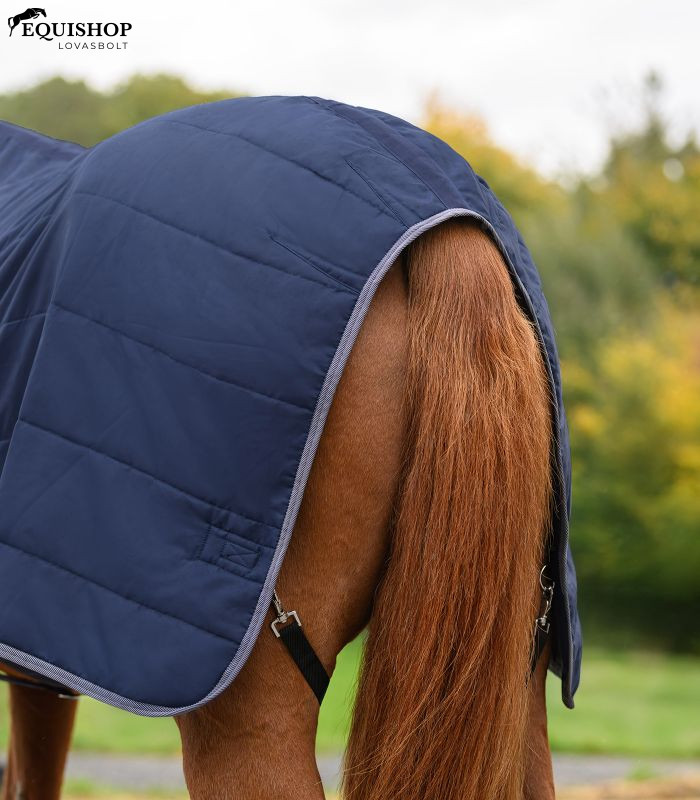 A gazdaságos 100 g-os istállótakaró megbízható meleget és kivételes kényelmet biztosít a mindennapi istállóhasználathoz. A légáteresztő 420 denier poliészter rendkívül strapabíró, és kellemes, száraz istállóklímát biztosít. A dupla T-elülső rögzítés tépőzárral alul, az állítható keresztpántok és a masszív farokzsinór garantálja a biztonságos és stabil illeszkedést. Ezenkívül a takaró hátsó lábpántok rögzítésére szolgáló eszközzel is rendelkezik. Klasszikus, funkcionális kialakításával ötvözi a tartósságot, a kényelmet és a praktikumot. Ideális mindennapi használatra.
