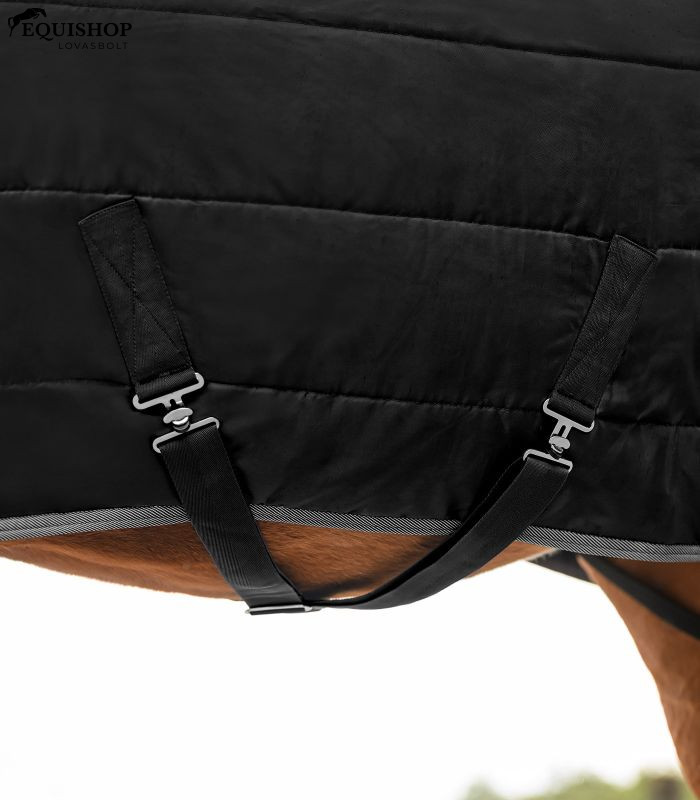 A gazdaságos 100 g-os istállótakaró megbízható meleget és kivételes kényelmet biztosít a mindennapi istállóhasználathoz. A légáteresztő 420 denier poliészter rendkívül strapabíró, és kellemes, száraz istállóklímát biztosít. A dupla T-elülső rögzítés tépőzárral alul, az állítható keresztpántok és a masszív farokzsinór garantálja a biztonságos és stabil illeszkedést. Ezenkívül a takaró hátsó lábpántok rögzítésére szolgáló eszközzel is rendelkezik. Klasszikus, funkcionális kialakításával ötvözi a tartósságot, a kényelmet és a praktikumot. Ideális mindennapi használatra.