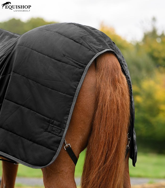 A gazdaságos 100 g-os istállótakaró megbízható meleget és kivételes kényelmet biztosít a mindennapi istállóhasználathoz. A légáteresztő 420 denier poliészter rendkívül strapabíró, és kellemes, száraz istállóklímát biztosít. A dupla T-elülső rögzítés tépőzárral alul, az állítható keresztpántok és a masszív farokzsinór garantálja a biztonságos és stabil illeszkedést. Ezenkívül a takaró hátsó lábpántok rögzítésére szolgáló eszközzel is rendelkezik. Klasszikus, funkcionális kialakításával ötvözi a tartósságot, a kényelmet és a praktikumot. Ideális mindennapi használatra.